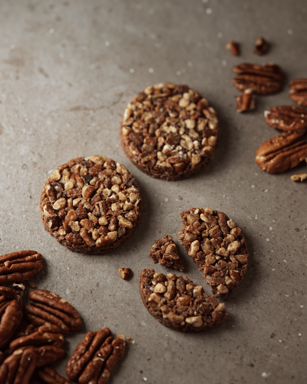 鋪滿碧根果(又稱「奶油之木」)的奢華脆口巧克力。經糖衣處理後,香氣濃郁、甜度恰好,搭配絲滑牛奶巧克力,交織出馥郁香氣與深邃風味,只有在快閃店才能品嚐。