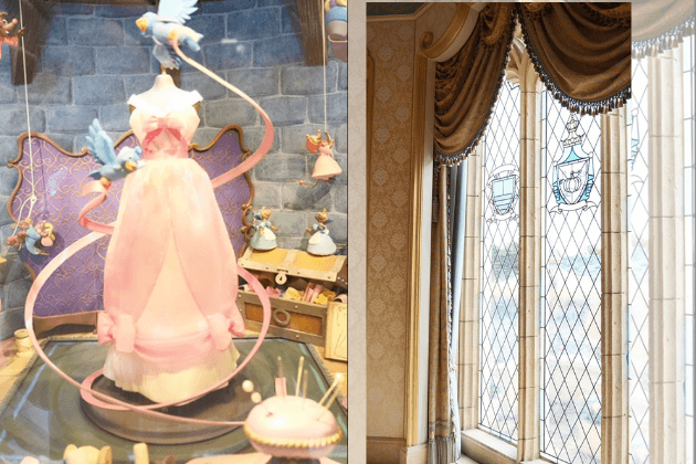 走進城堡內的商店或參觀灰姑娘迎賓會,會發現許多精緻的仙履奇緣主題櫥窗,連小老鼠縫製的粉色禮服都栩栩如生!