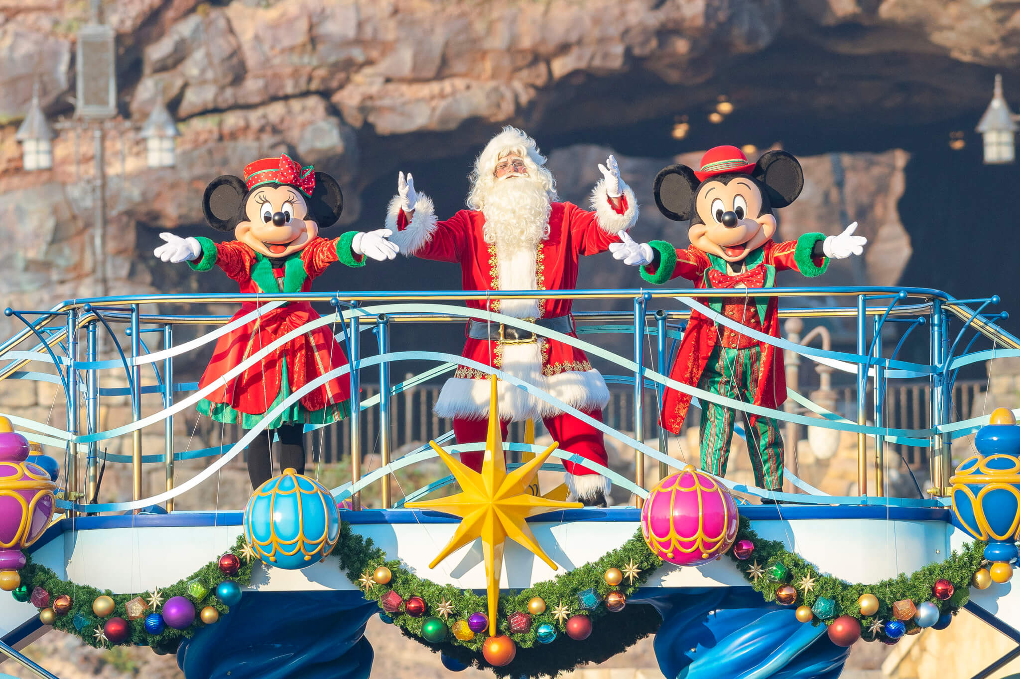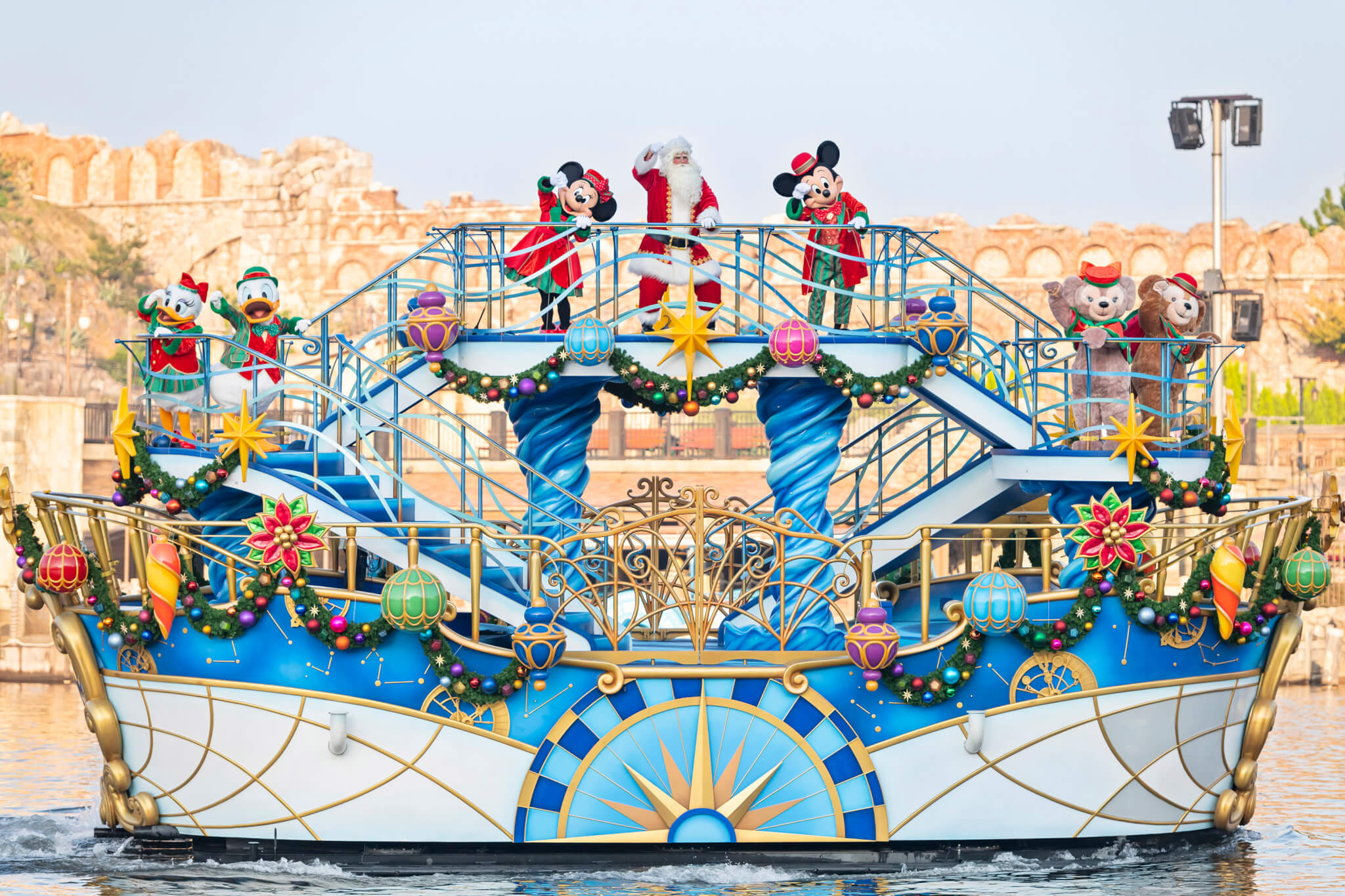 伴隨聖誕樂曲,米奇與好友將身穿聖誕服裝,乘船與遊客互動,聖誕老人也將一同登場!